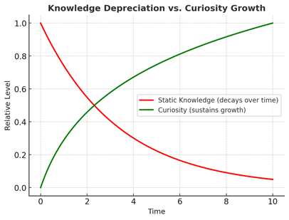 Figure 1. Knowledge depreciation vs. curiosity growth as explained by Leslie (2014).